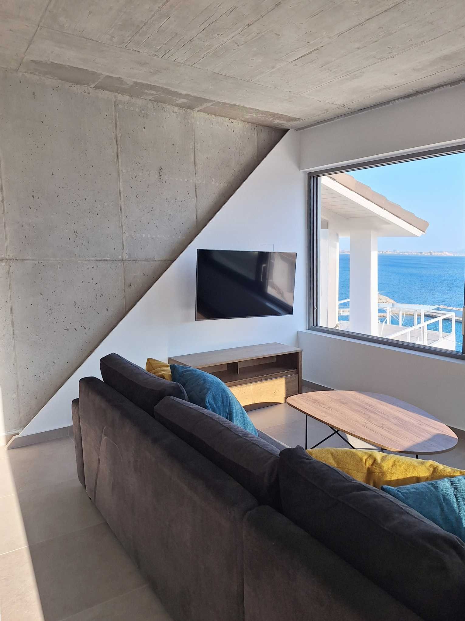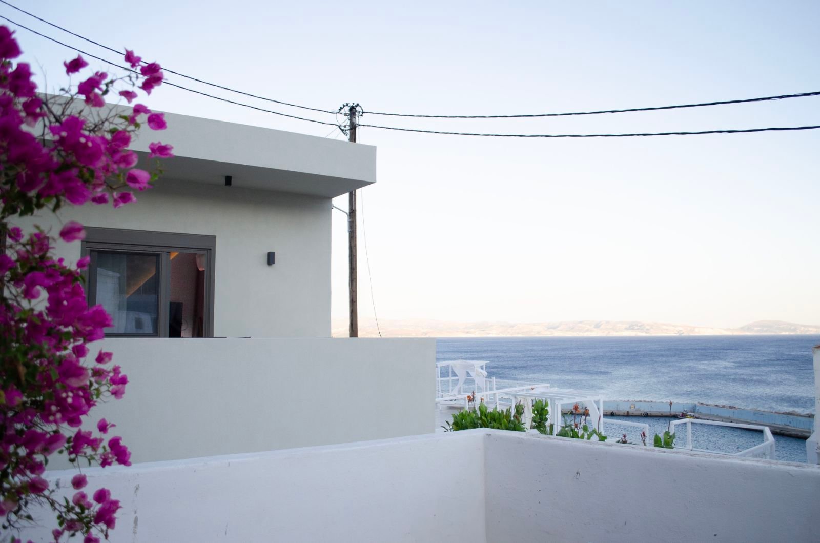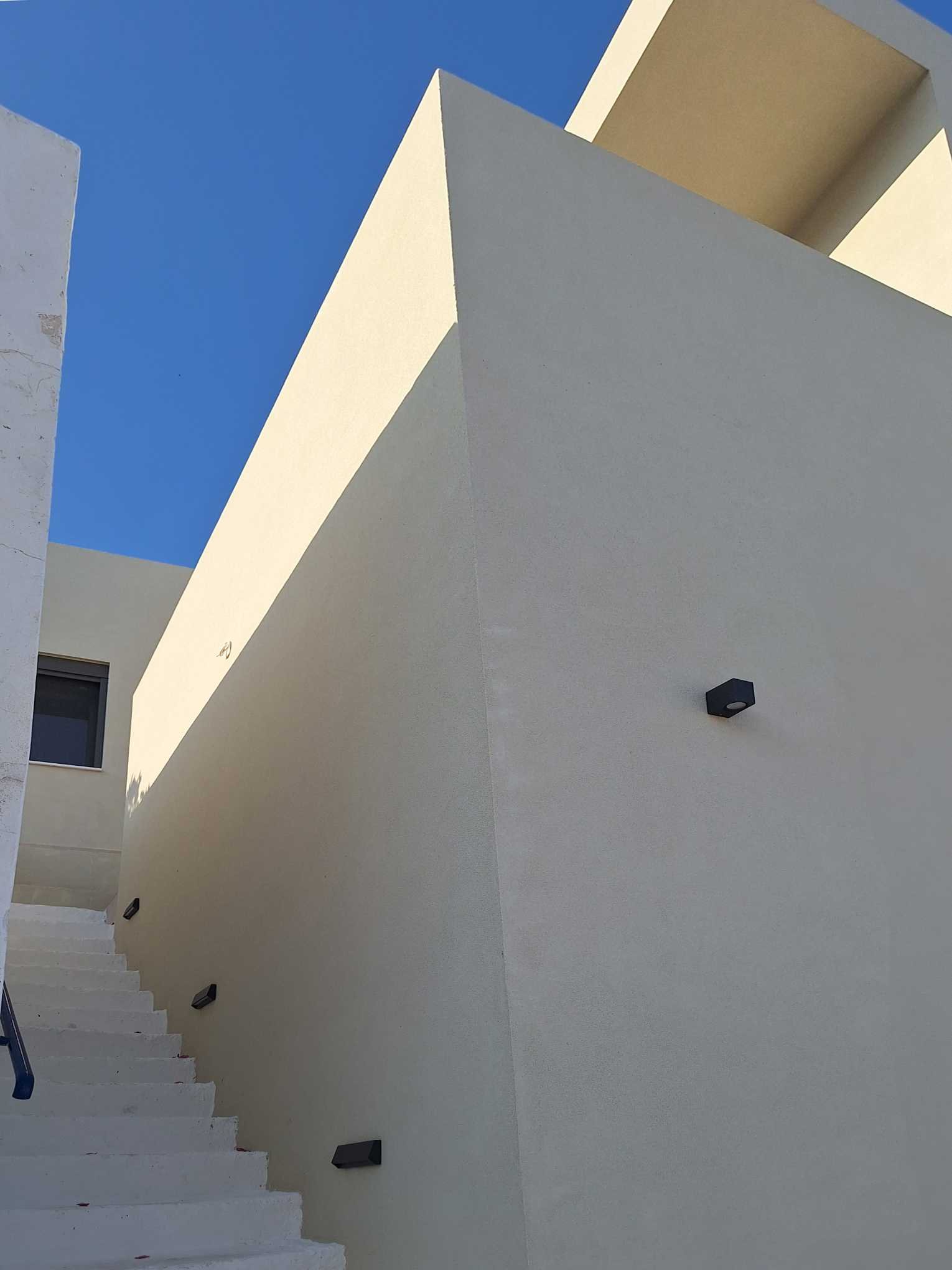 A whitewashed staircase, a memory of past times and an authentic way of life, gives way to a space where modern and rustic combine in calm and tranquility. Look out to the horizon, where the blue of the sea meets the blue of the sky.