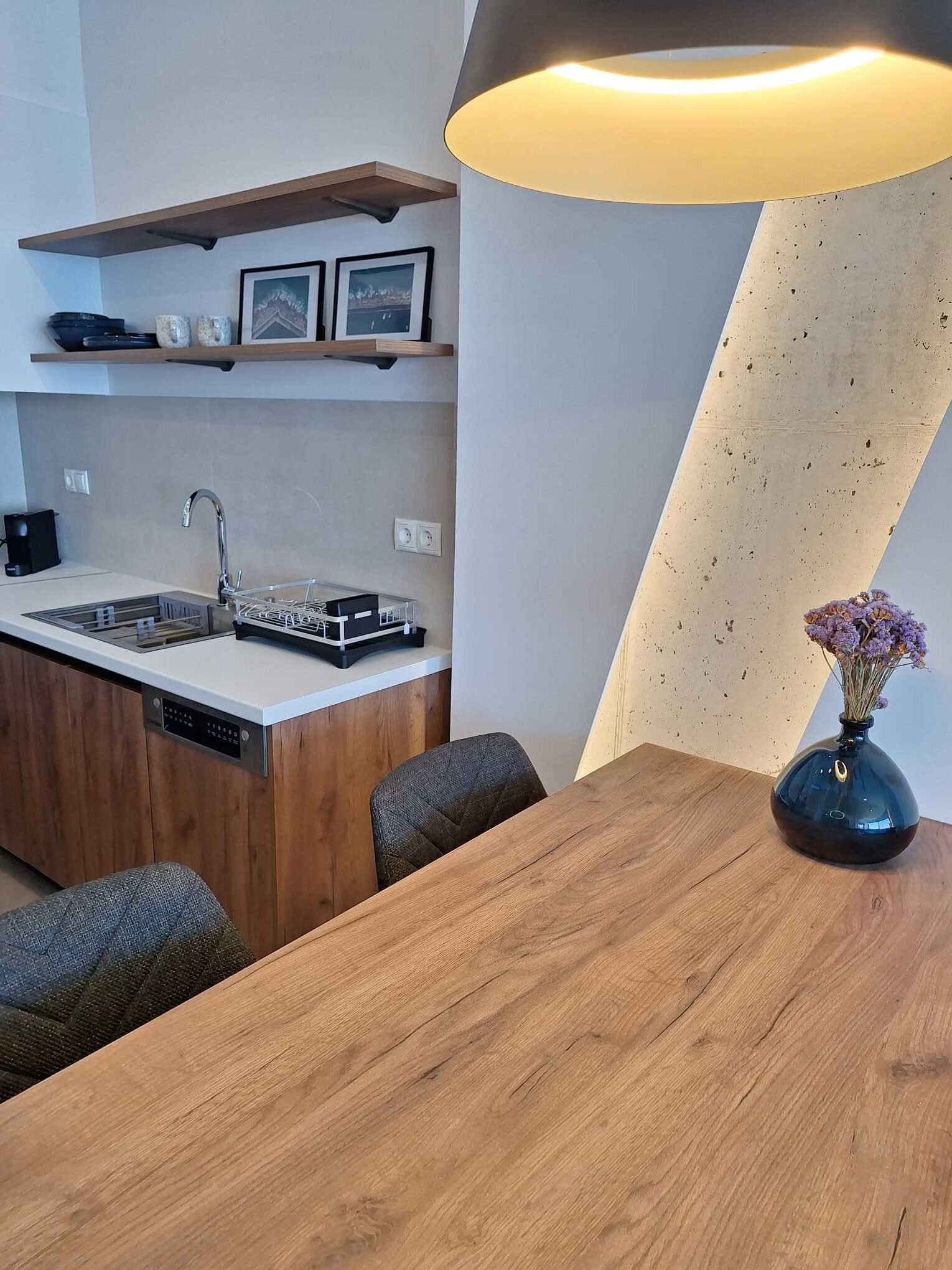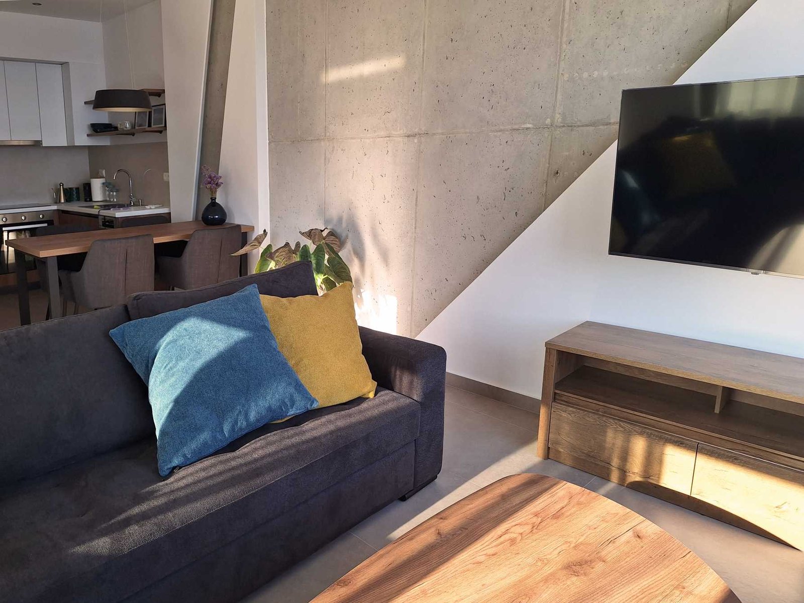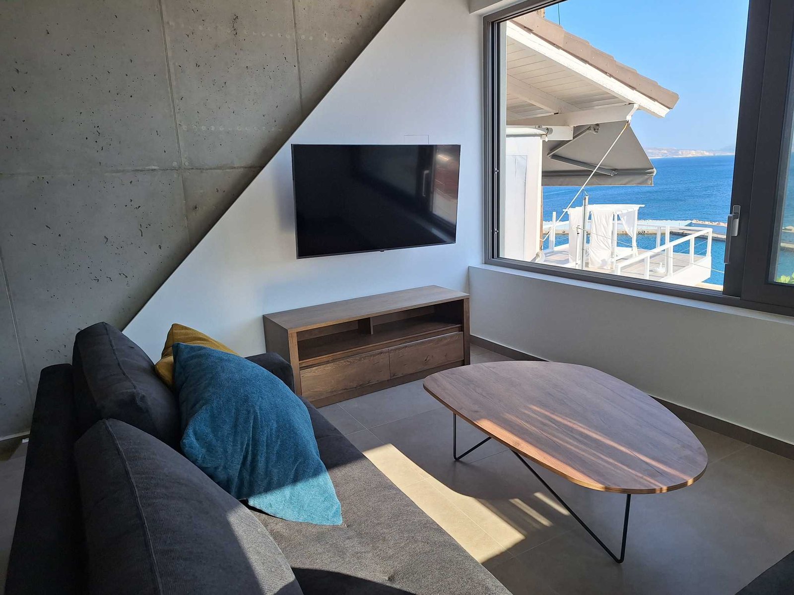 A whitewashed staircase, a memory of past times and an authentic way of life, gives way to a space where modern and rustic combine in calm and tranquility. Look out to the horizon, where the blue of the sea meets the blue of the sky.